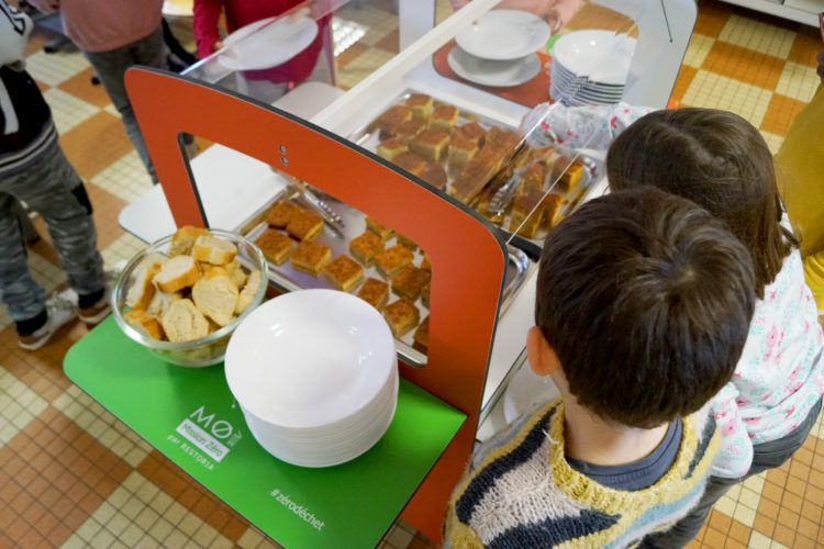 Pour répondre à des problématiques de gaspillage alimentaire sur le terrain, RESTORIA a développé un concept de restauration spécifique pour le marché de l’enseignement. Le principe est simple : les restaurants « Mission 0 » bénéficient de kits de communication et d’une signalétique spécifique et leurs convives sont largement sensibilisés. Ils deviennent réellement acteurs de leur repas, avec un parcours repensé totalement au sein du restaurant.