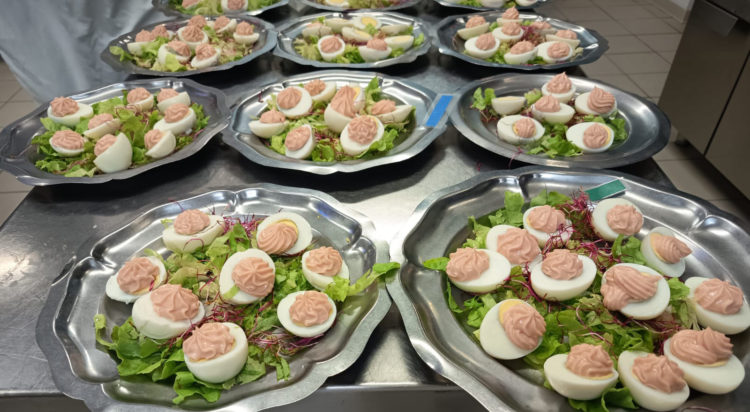 En Octobre notre cuisine vendéenne accueille chaque année des visiteurs à l’occasion des Journées Régionales de la Visite d’Entreprises ! Un temps fort apprécié, autant par les curieux venus découvrir les coulisses de la restauration collective, que par nos collaborateurs. Ils peuvent ainsi partager leur quotidien et leur passion. Et ils peuvent surtout prouver que la restauration collective peut également faire la part belle aux recettes maisons et aux produits de qualité et de proximité ! Et ça, c’est essentiel !